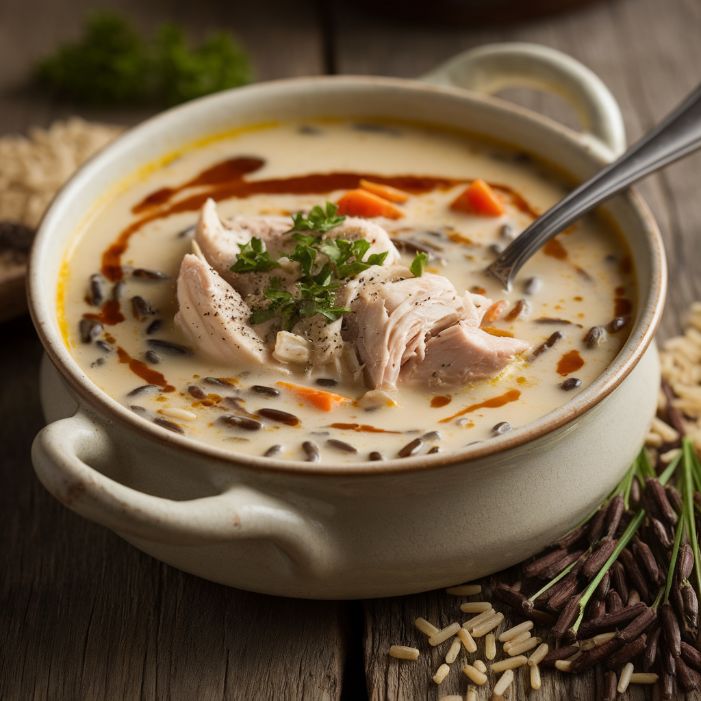 You successfully created a rich, savory, and incredibly comforting batch of Creamy Chicken and Wild Rice Soup. You mastered the crucial steps of cooking the wild rice correctly, building the thickening roux, and adding the cream without curdling. You now possess the secret to a true, satisfying, Midwestern classic.