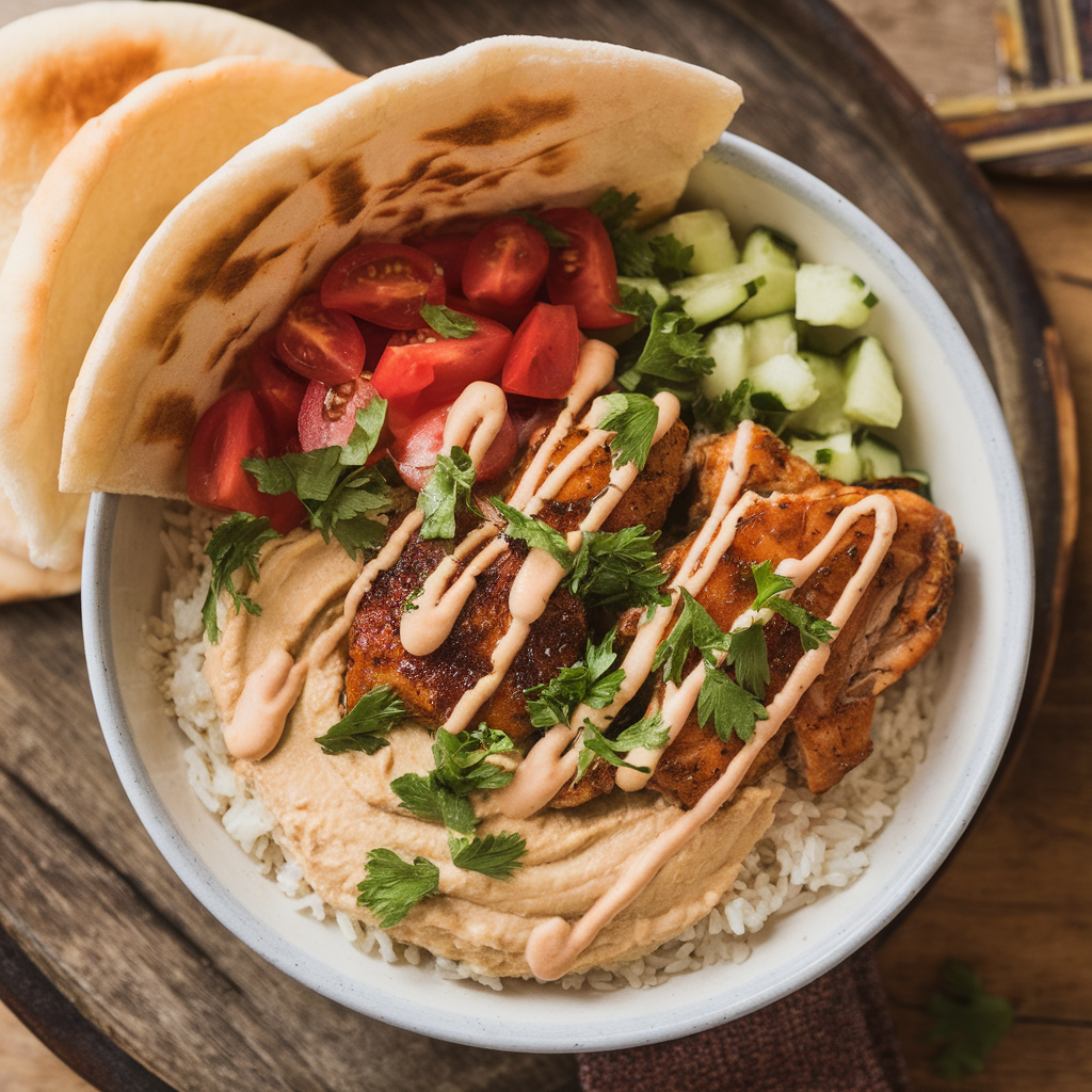 - Fat: ~25–30g (Includes healthy fats from tahini and chicken)