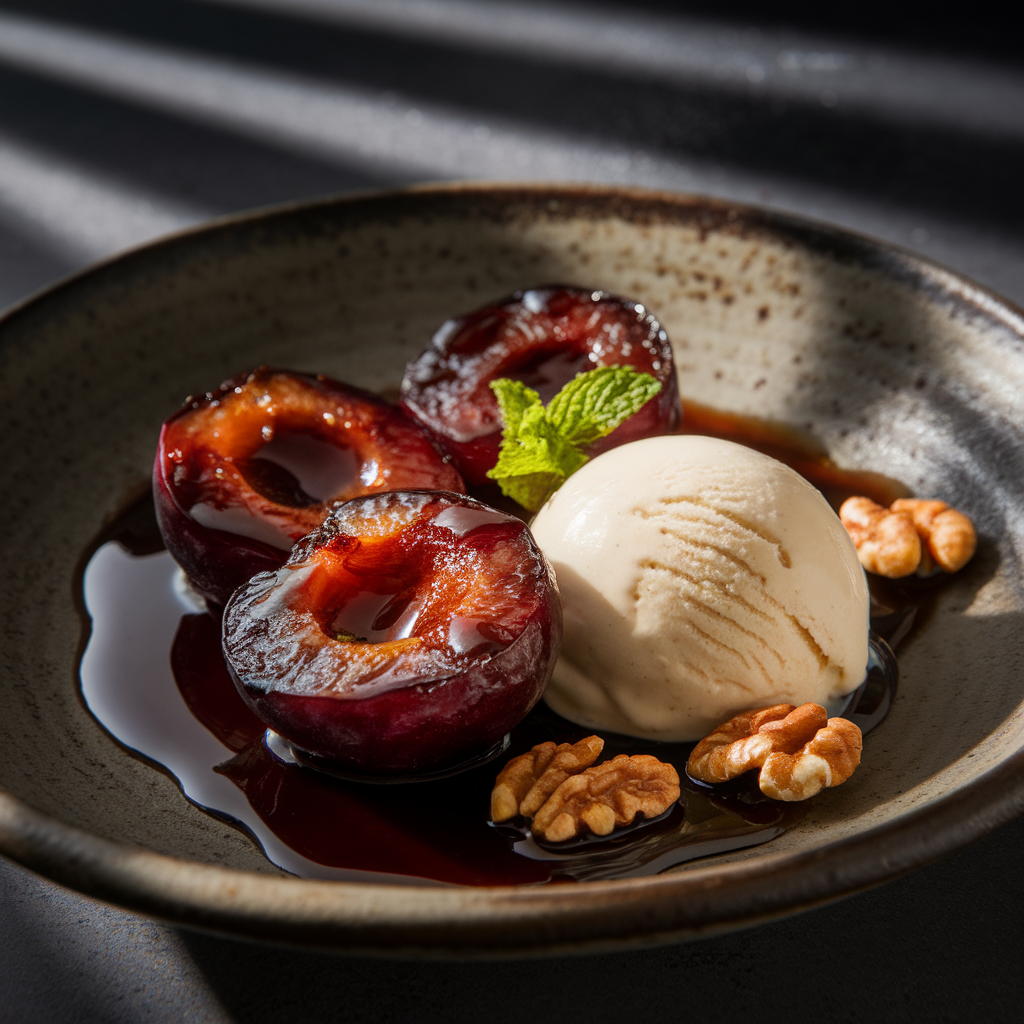 I still remember the first time I roasted plums. I was a bit skeptical. Plums, in my mind, were meant to be eaten raw, a juicy, sweet snack on a hot summer day. But one evening, I was craving something a little different, something that was both sweet and savory. I had a few ripe plums, a bottle of balsamic vinegar, and a jar of honey in the pantry. I decided to throw caution to the wind and see what happened. I tossed the plums with a little bit of honey and a generous drizzle of balsamic vinegar, and roasted them in the oven. The result was an absolute revelation. The plums softened and became incredibly juicy, and the honey and balsamic vinegar caramelized into a rich, complex sauce that was both sweet and tangy. It was a complete game-changer, and it became my go-to for a quick, elegant, and delicious dessert.