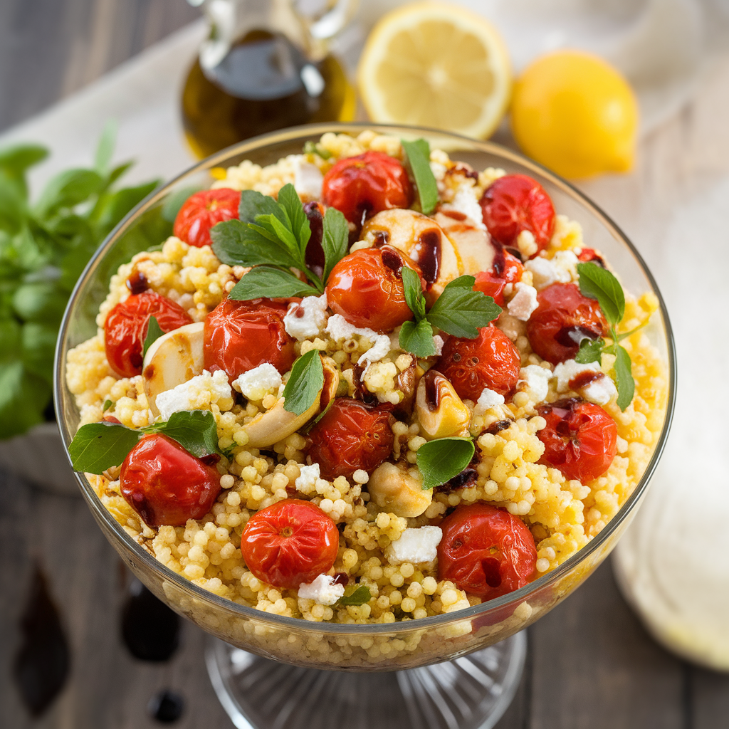 This recipe is all about letting fresh, simple ingredients shine. We take the sweet, juicy goodness of cherry tomatoes, roast them to perfection, and then toss them with quick-cooking couscous for a delightful, Mediterranean-inspired dish.